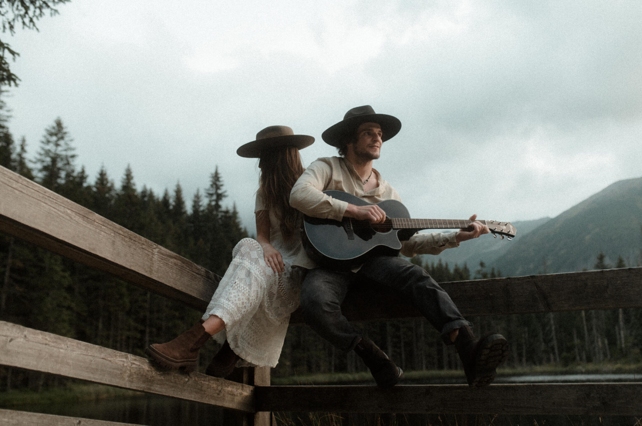 Jasiek, pełen niespodzianek, nie zapomniał zabrać ze sobą gitary, co dodało całej sesji wyjątkowego charakteru. Dźwięki płynące z tego instrumentu w połączeniu z szumem wody i górskimi echem tworzyły niezapomnianą atmosferę. Każdy moment spędzony z tą parą był przepełniony radością i wzajemnym ciepłem. Ich obecność w tym górskim raju była jak idealna symfonia, której nie sposób zapomnieć.